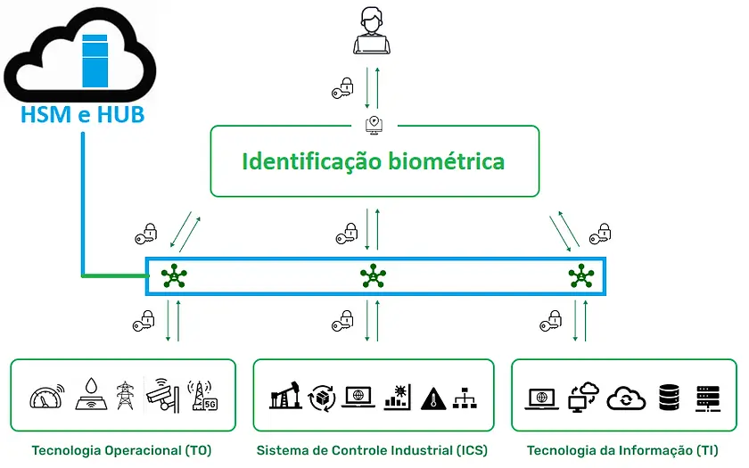 Os usuários acessam a plataforma e os ativos críticos sem o uso de login e senha, utilizando chaves privadas com autenticação biométrica de forma transparente, garantindo o não repúdio de quem acessa.